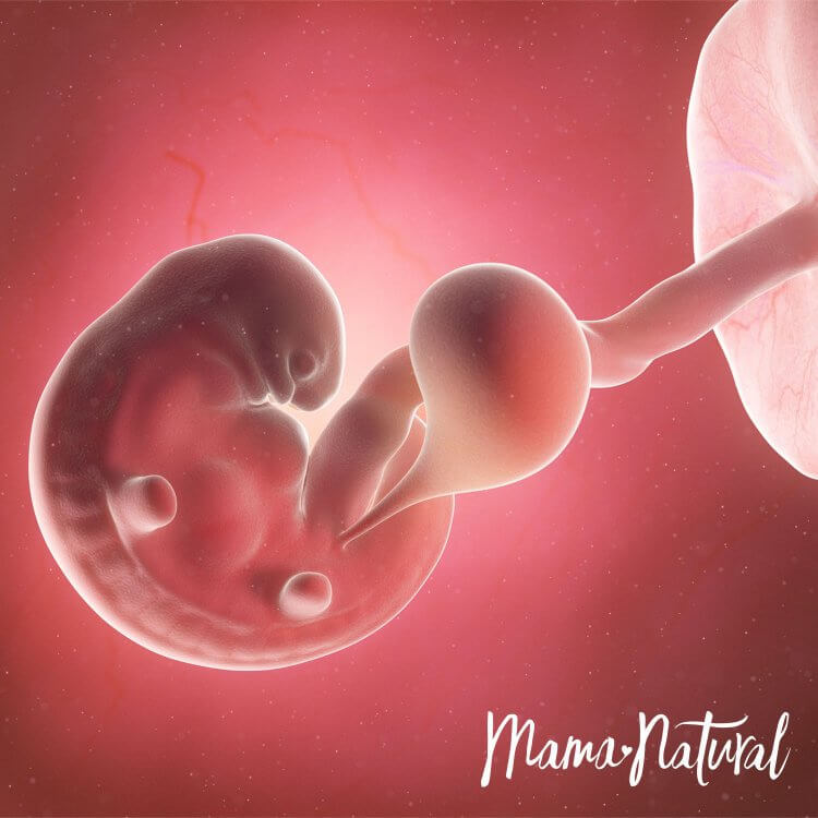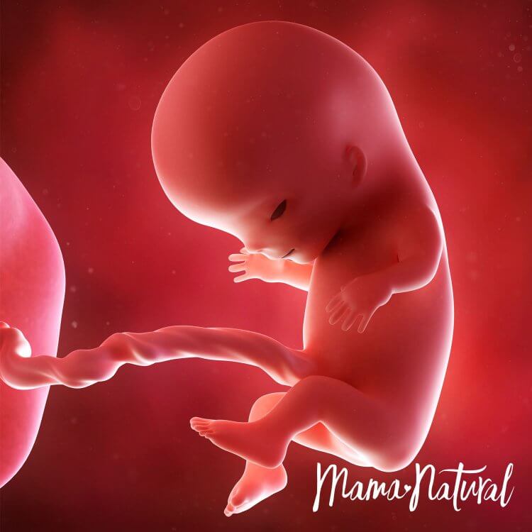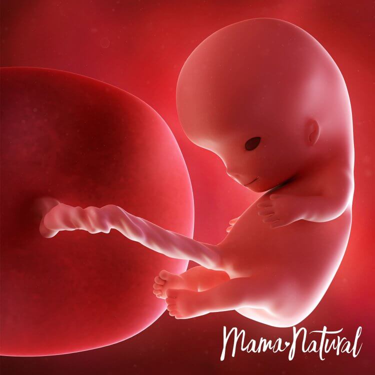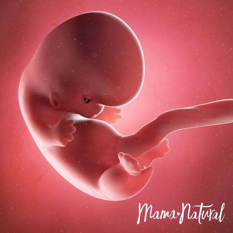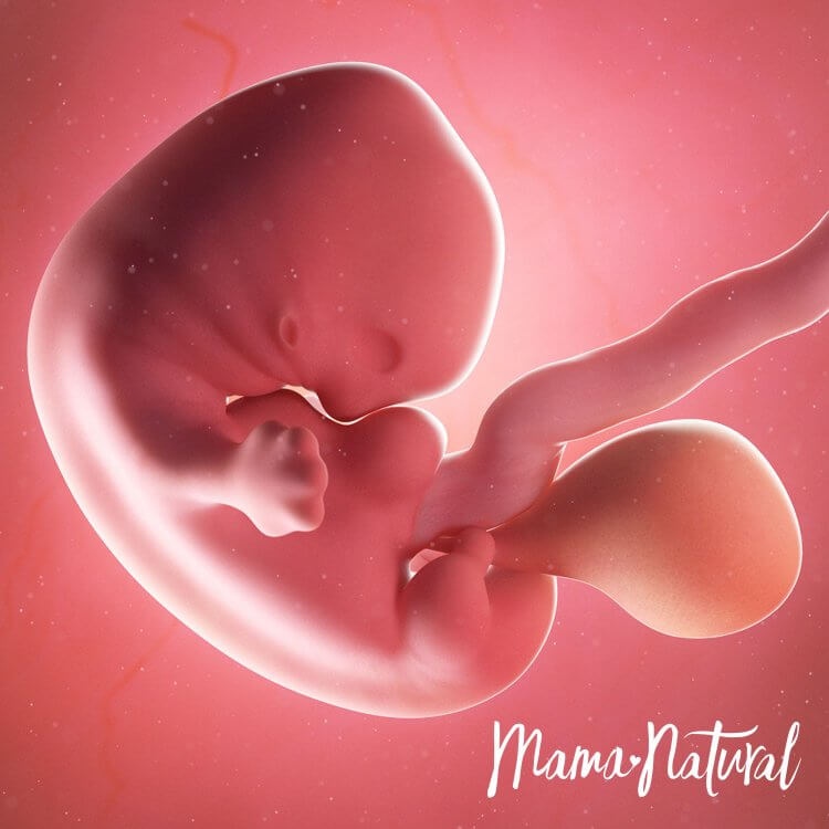 Bebeğimiz kuru erik kadar yani 3,5cm uzunluğunda ve 8 gr ağırlığındadır. Embriyo gelişiminin tamamlanıp fetus dediğimiz evreye geçilmiştir. Fetal dönemde ise organlar hızlıca büyüyüp olgunlaşmaya başlar. Kuyruk görünümü komple kaybolur. Cilt hala şeffaf olmasına rağmen kol ve bacaklar kıvrılabilir ve parmaklar belirginleşir. Çene kemiklerinde süt dişleri görülmeye başlar.