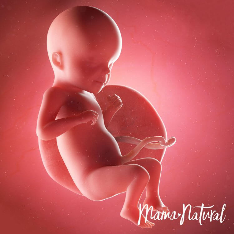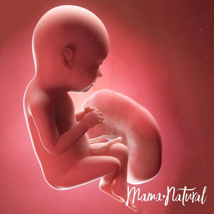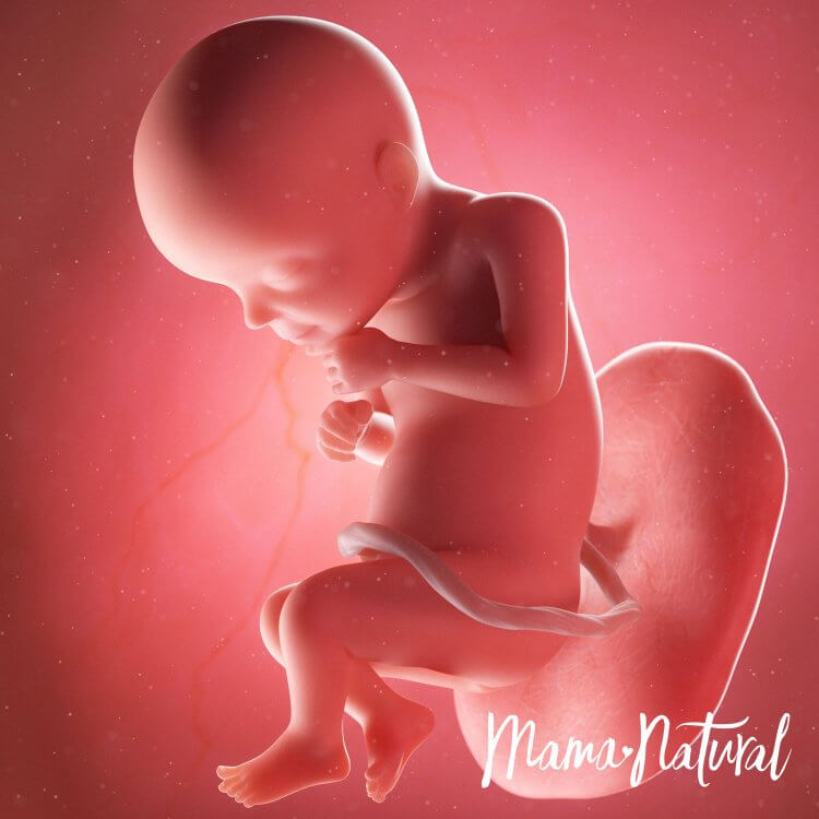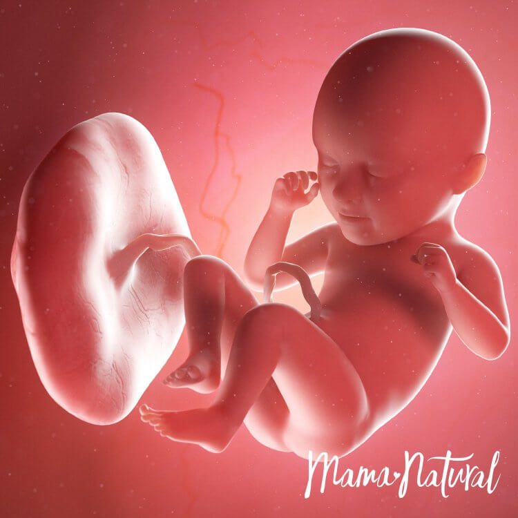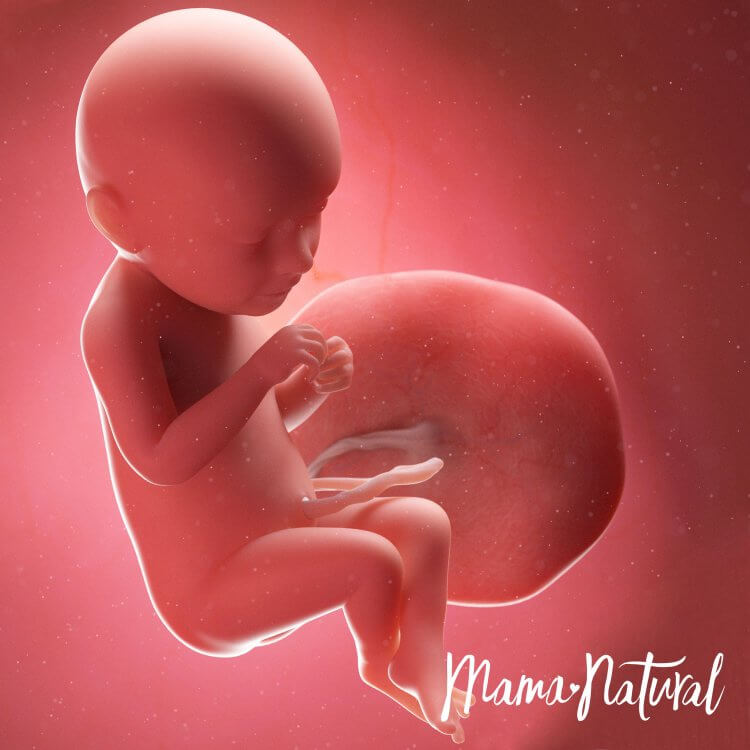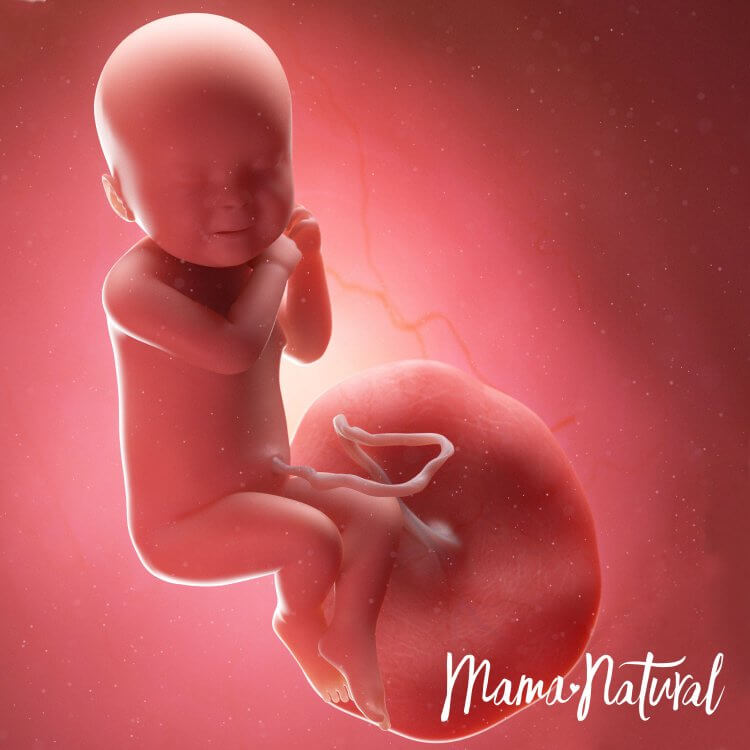 Bebeğimiz muz kadar yani 15cm uzunluğunda ve 250gr ağırlığındadır. Bebeğimizin koklama, görme, tat ve işitme duyuları gelişir. Bu haftalarda uyuma periyotları düzenli hale gelmeye başlayan bebeğimiz günde toplam 18 saat uyurken 6 saat hareket eder.