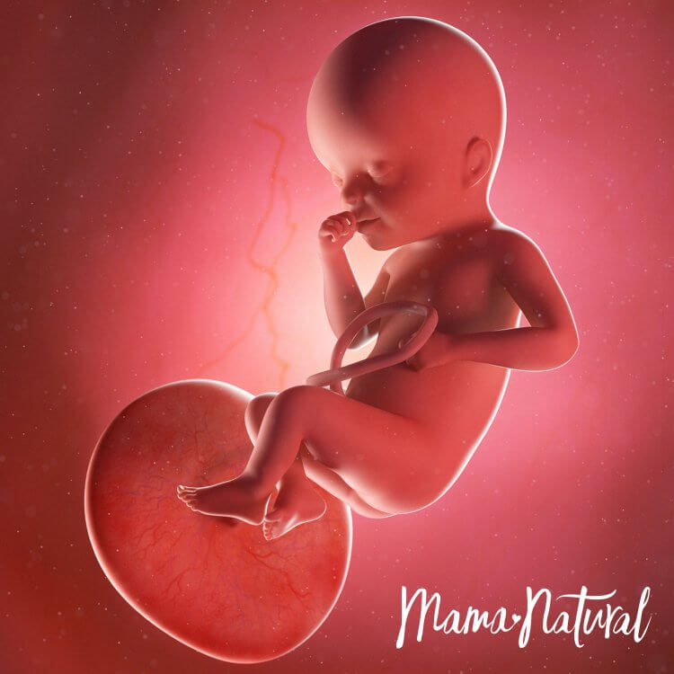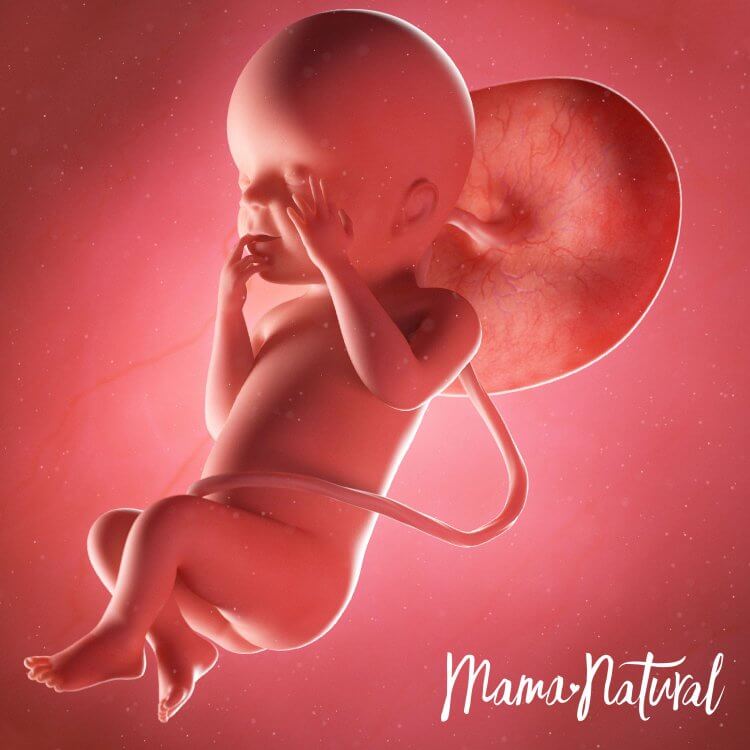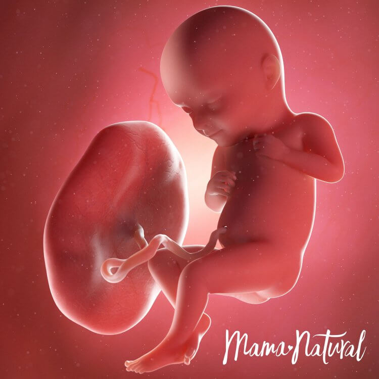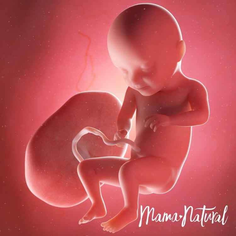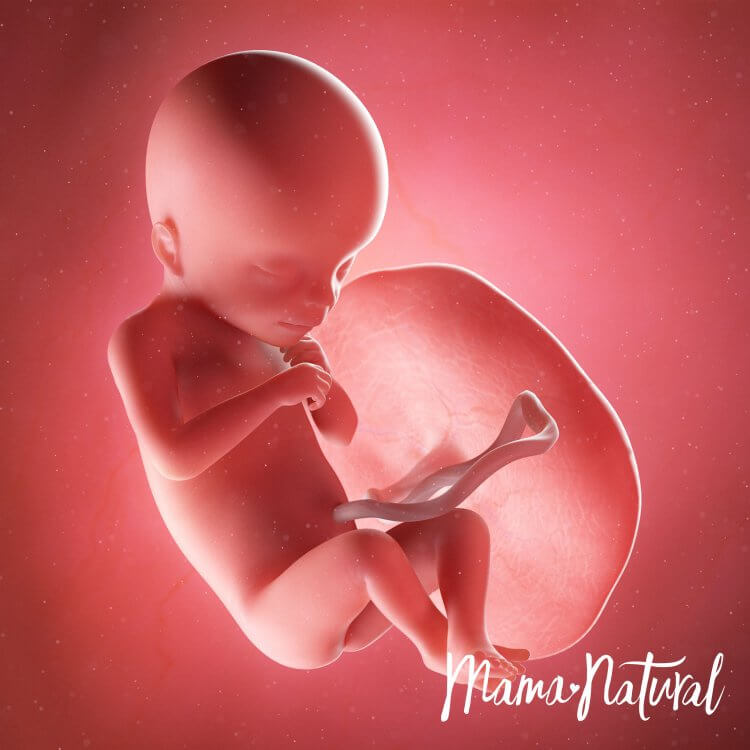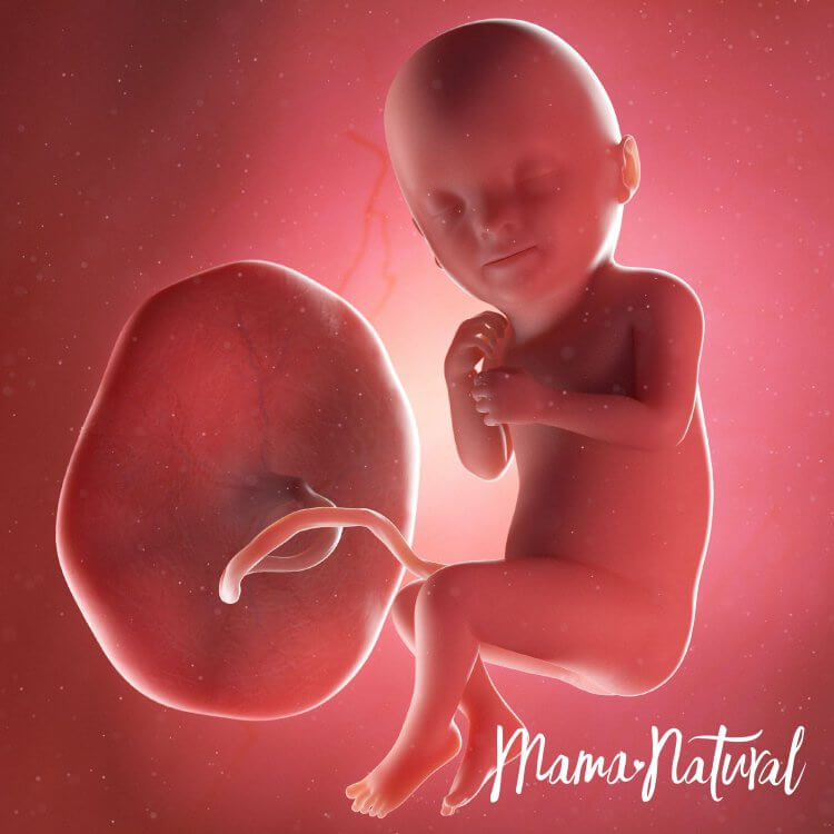 Bebeğimiz muz kadar yani 15cm uzunluğunda ve 250gr ağırlığındadır. Bebeğimizin koklama, görme, tat ve işitme duyuları gelişir. Bu haftalarda uyuma periyotları düzenli hale gelmeye başlayan bebeğimiz günde toplam 18 saat uyurken 6 saat hareket eder.